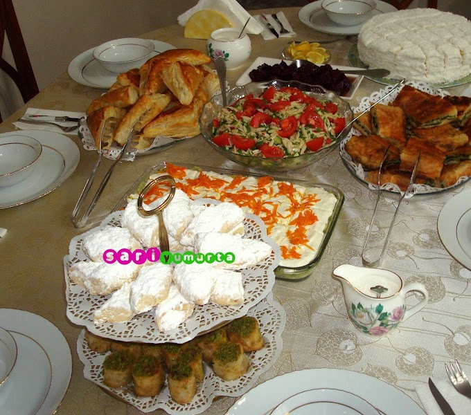 Devamını OkuGün İkramları Fındıklı Un Kurabiyesi Fıstıklı Oturtma Tatlısı Amonyaklı Pasta Patates Püreli Yoğurtlu Salata Zeytinyağlı Arpa Şehriye Salatası Pancar Salatası Ispanaklı …